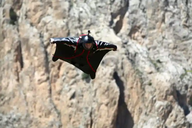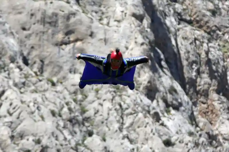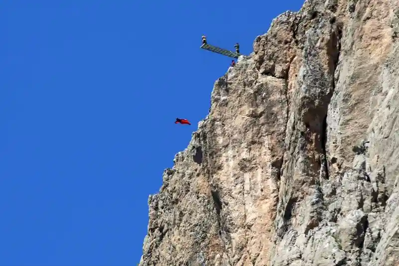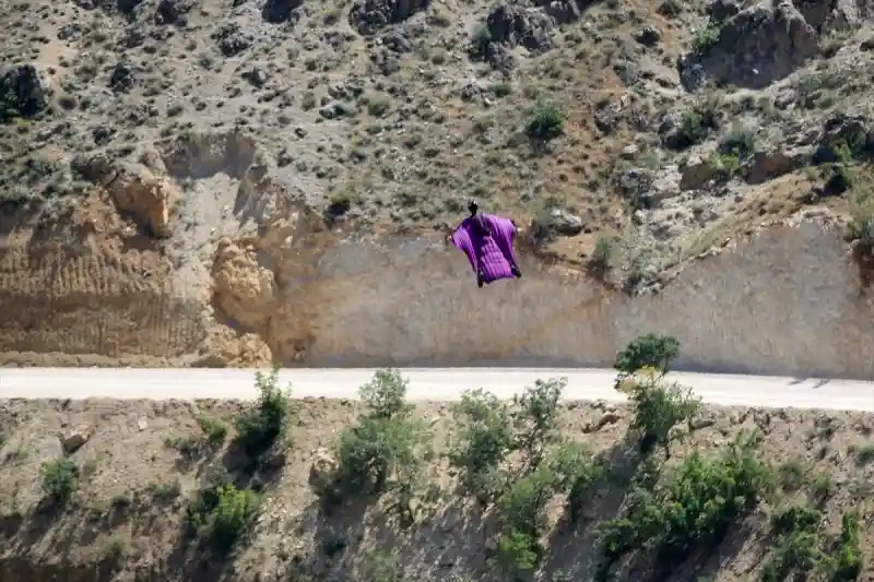 Erzincan'ın Kemaliye ilçesinin Gabani bölgesinde, 600 metre yükseklikte kurulan 6 metre uzunluğundaki "cennete açılan kapı" olarak adlandırılan platforma, demir yol adı verilen ve 517 demir basamaktan oluşan "Via Ferrata" parkurundan tırmanarak çıkan 8 sporcu "wingsuit exit" atlayışı yaptı.