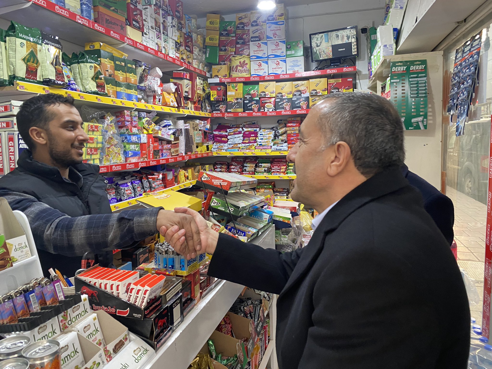 İlçede vatandaşlar ile buluşarak esnaf ziyareti de gerçekleştirdi.