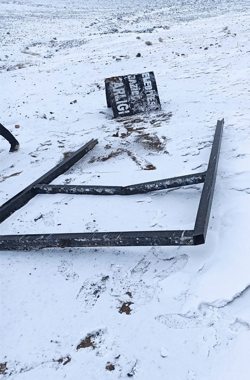 Doğubayazıt'ta kimliği belirsiz kişi veya kişilerce hayvan barınağı tabelasına zarar verildi. Karabulak Köyü civarında bulunan barınağın tabelasına zarar verilip kırılması vatandaşların da tepkisine neden oldu.