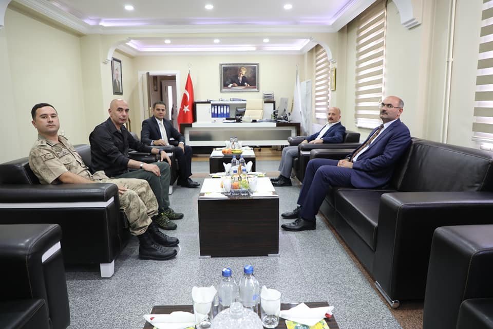 Doğubayazıt Kaymakamı Mehmet Kemal Akpınar'ı makamında ziyareti akabinde, Sınır güvenlik tedbirlerinin yerinde incelenmesinden önce, Vali Varol başkanlığında, İlçe Protokol Üyelerinin katılımıyla sınır güvenliği değerlendirme toplantısı yapıldı.