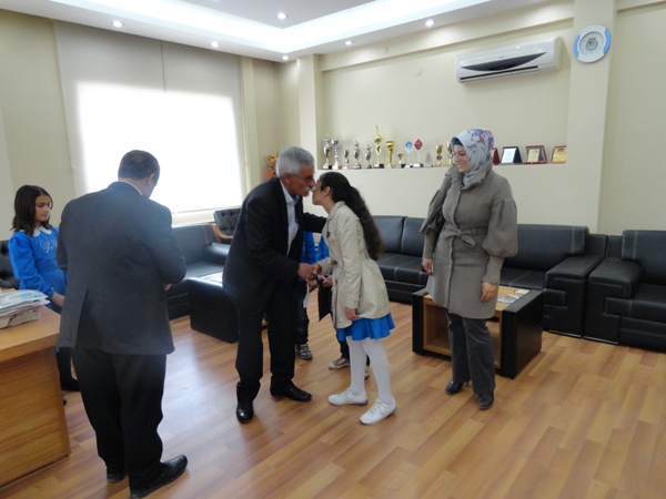 Doğubayazıt'ın minik başkanı Azra Koç'u Belediye Başkan Yardımcısı Mehmet Yavuz ,Yazı İşleri Müdürü İsmet Tutar ve meclis üyeleri başkanlık makamında ağırladı.Hüsnü Özyeğin İlk okulunda okuyan Başkan Koç öğretmenleri ile birlikte Doğubayazıt Belediyesine geçti.