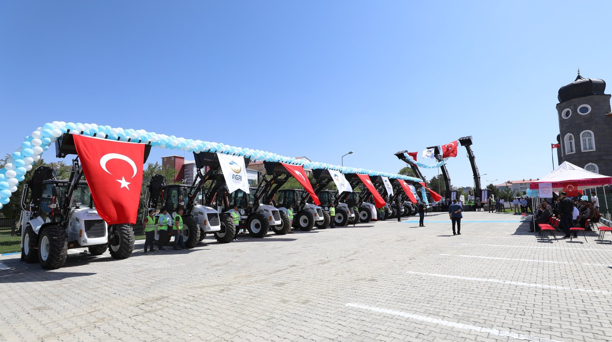 Alınan 9 adet kazıyıcı yükleyici araçtan her ilçe hizmetine 1 adet verilecek, 2 adedi ise il merkezinde hizmet sunacak. Yeni alınan iş makineleri ile Ağrı İl Özel İdaresinin filosundaki araç sayısı 176 adet oldu.